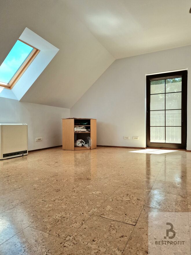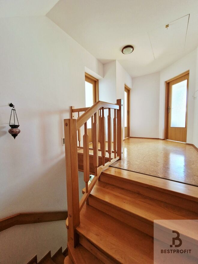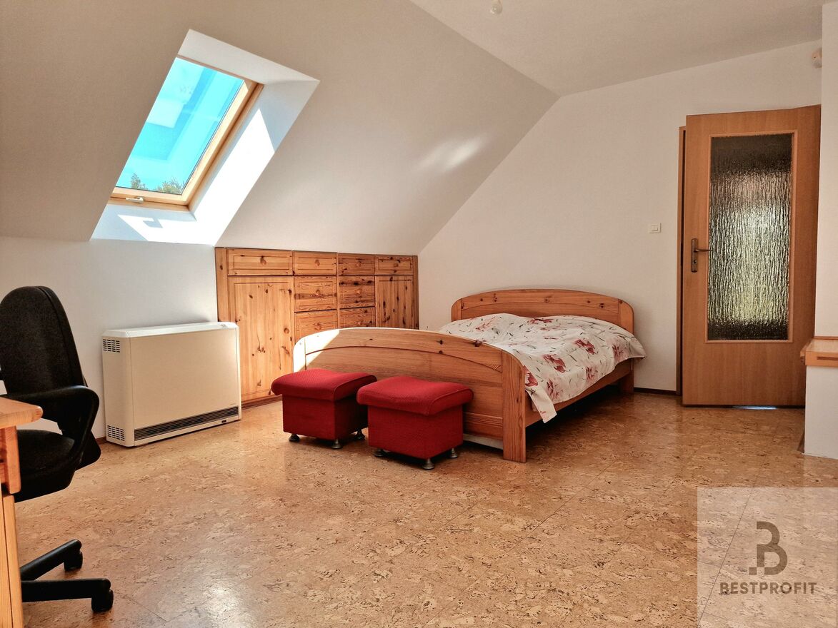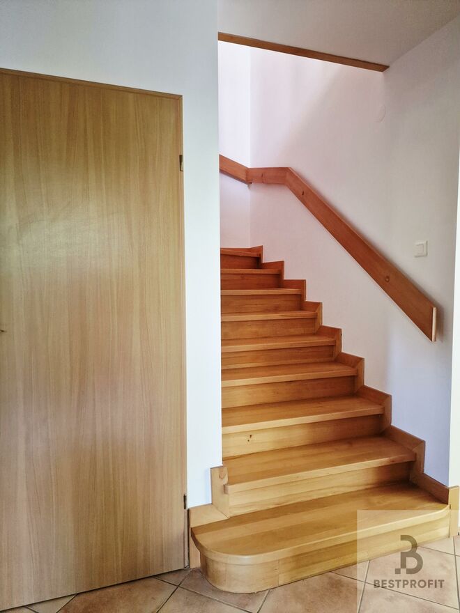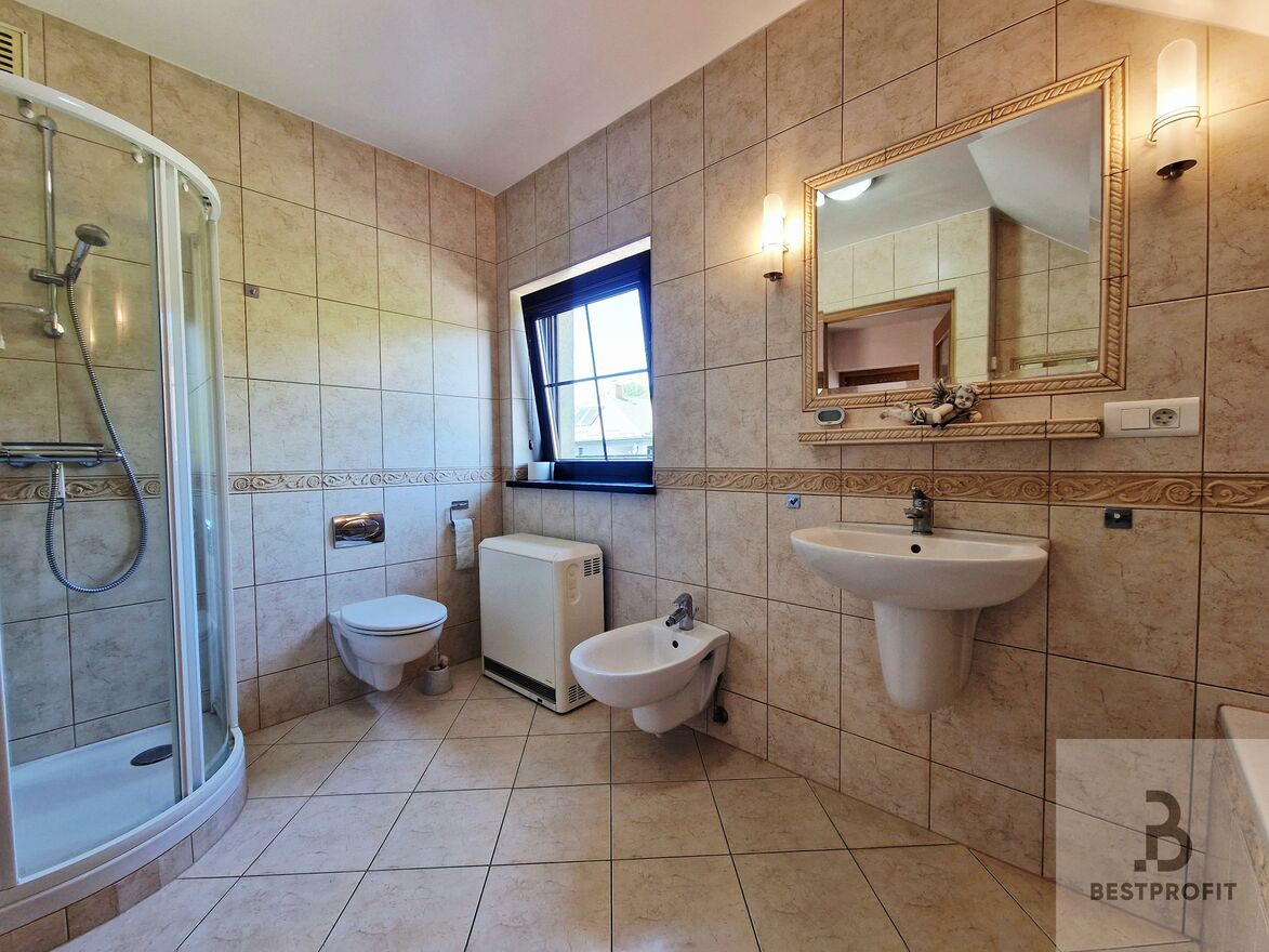 * Na piętrze są 3 ustawne sypialnie oraz duża, komfortowa łazienka z prysznicem, wanną i bidetem.